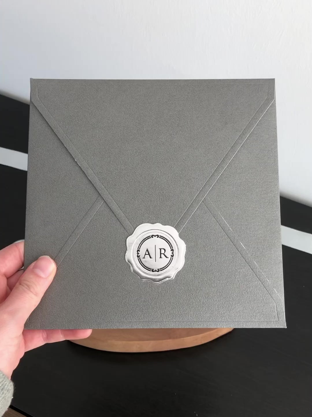 دعوات زفاف أنيقة من الأكريليك الرمادي مع زخارف من رقائق الفضة