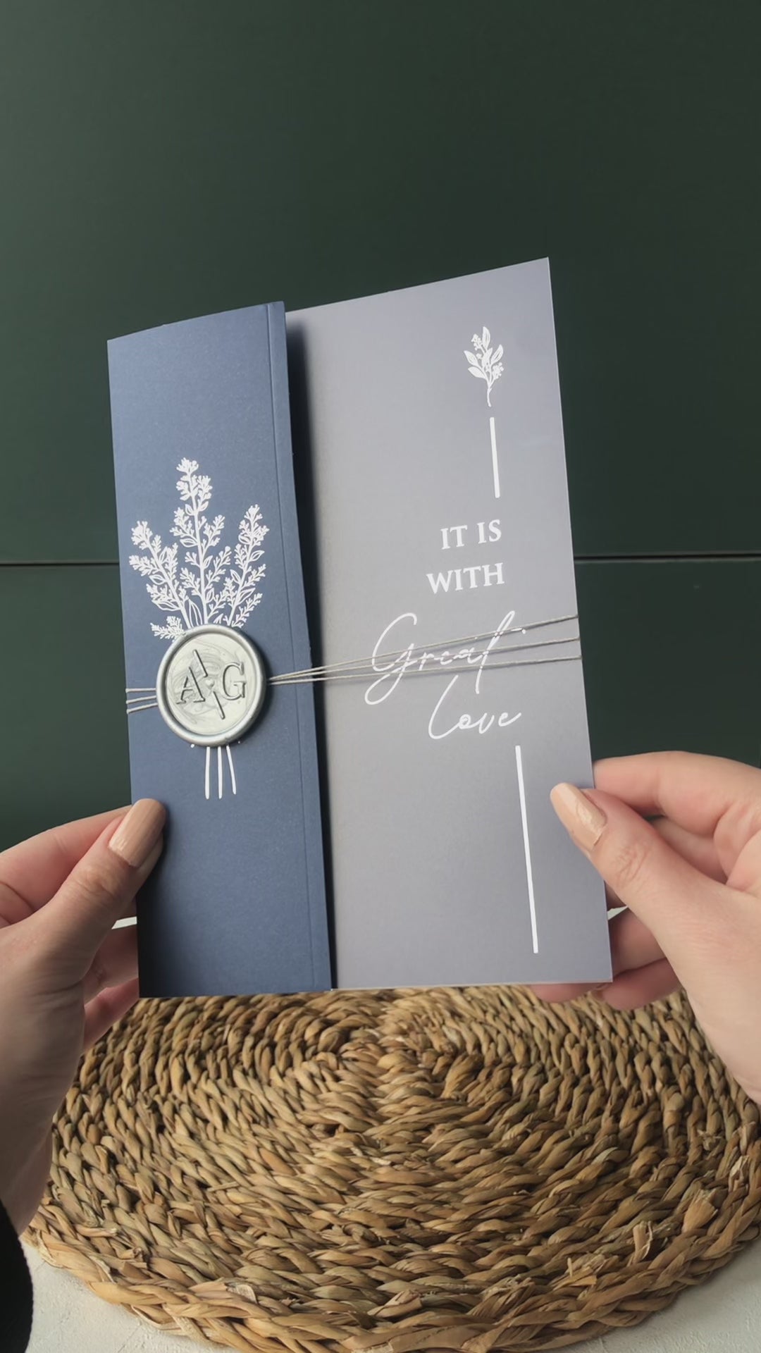 استمتعوا بفخامة دعوات زفافنا المصنوعة من الأكريليك والمطلية بورق فضي، والمُزينة بشكل رائع بأظرف زرقاء داكنة نصفية، وتفاصيل إكسسوارات رائعة بختم شمعي. تُضفي هذه الدعوات لمسة من الرقي الخالد، وهي مثالية للأزواج الذين يبحثون عن طريقة لا تُنسى لدعوة ضيوفهم.
