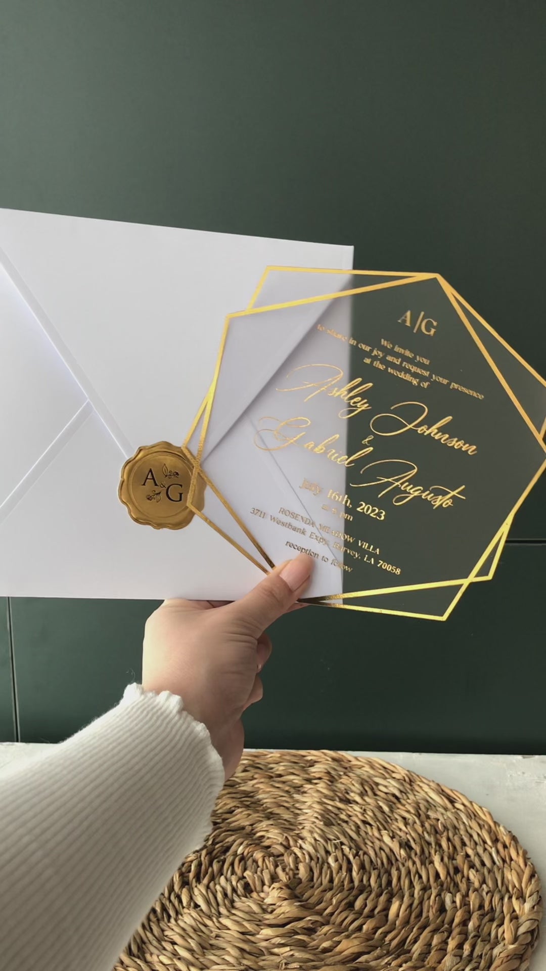 تألقي بدعوات زفافنا المصنوعة من الأكريليك الأبيض، والمزينة بطباعة ذهبية رائعة. كوني جريئة وأضفي لمسةً مميزةً على يومكِ المميز مع هذه الدعوات الأنيقة. أبهري ضيوفكِ بلمسةٍ فريدةٍ من الأناقة، واصنعي تجربةً لا تُنسى. انطلقي واجعلي زفافكِ الحلم حقيقةً!