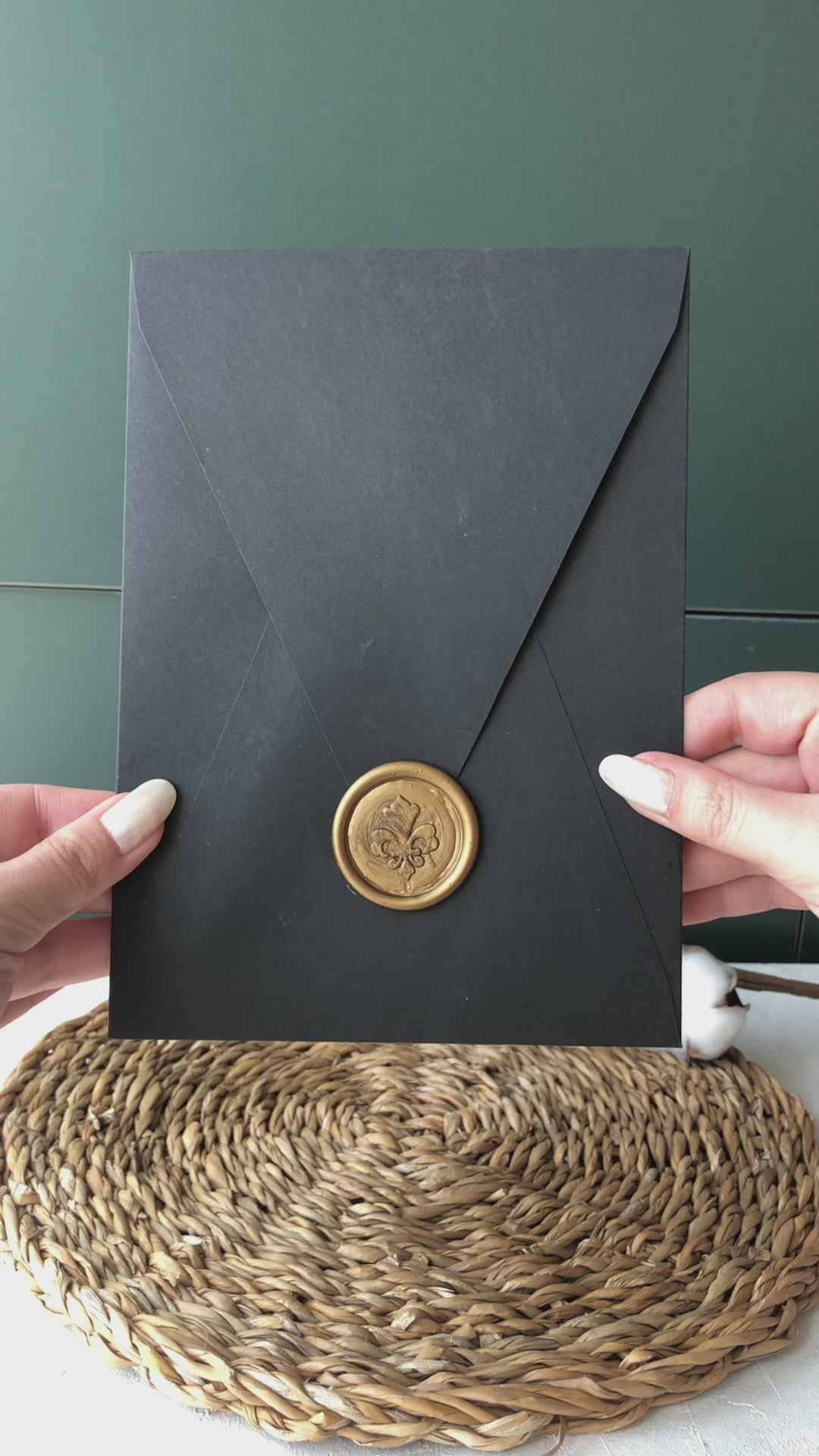 Introduce your wedding day with a touch of minimalist elegance and luxury with our Ivory Color Wedding Invitation with Deckle Edge and Black Envelope. These invitations feature a beautiful ivory color with a clean and modern design, accented by a stunning gold frame detail. The Deckle edge adds a touch of sophistication, while the black envelope creates a dramatic and luxurious presentation.